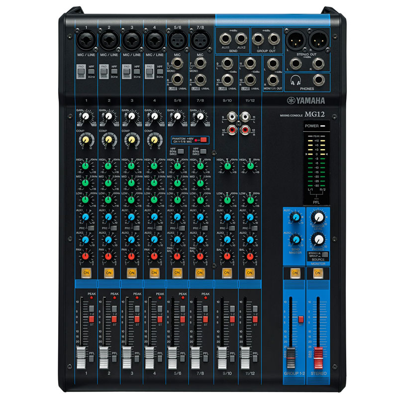 调音台 YAMAHA MG12 "6个话筒/12个线路输入 (4个单声道 + 4个立体声)