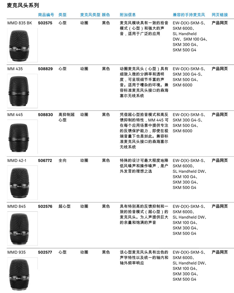 森海赛尔EW-D无线系统兼容多款Sennheiser麦克风,您可根据需求随意搭配选择。